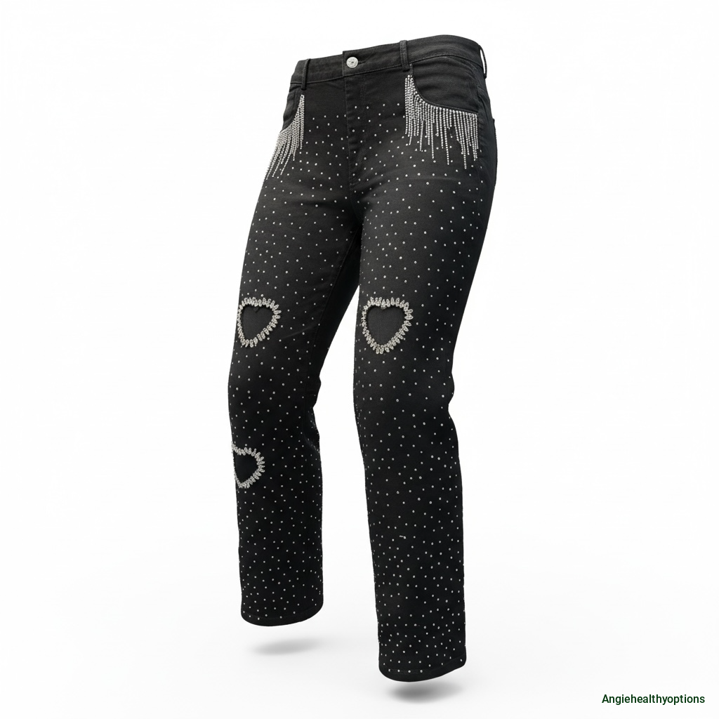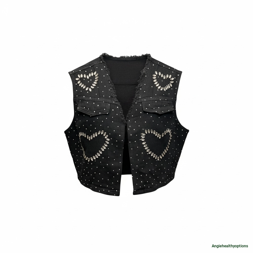 Bold, unique, and irresistibly stylish — this studded denim two-piece set delivers instant standout energy. Designed with shimmering rhinestone heart appliqués across the vest and jeans, it perfectly blends street-fashion confidence with a playful edge. Whether you’re heading to a festival, a casual night out, or creating content for social media — this look is guaranteed to turn heads. Crafted for comfort and personality, this set brings fresh attitude to your wardrobe.