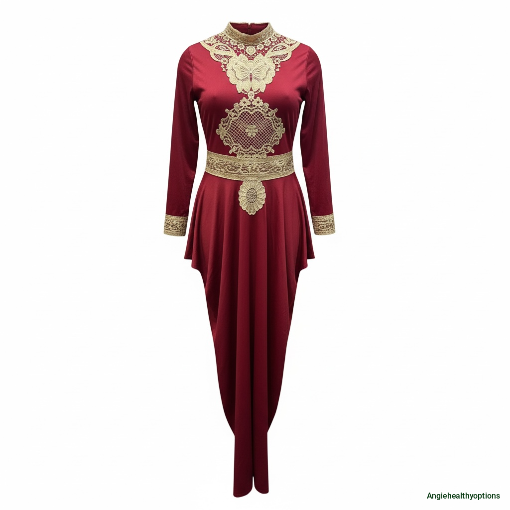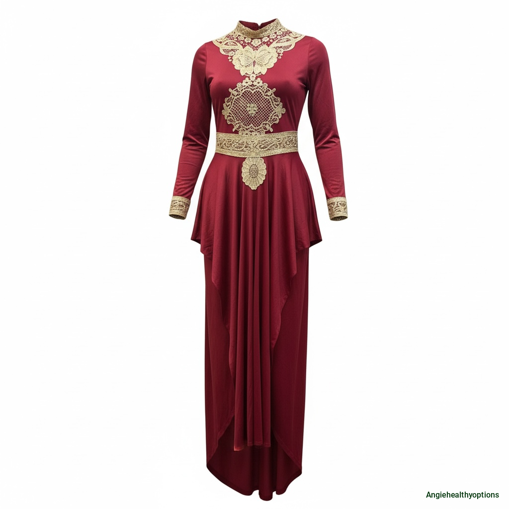 The high neckline and long sleeves offer a modest yet fashion-forward look, making it a perfect choice for weddings, formal dinners, religious celebrations, and cultural events.
