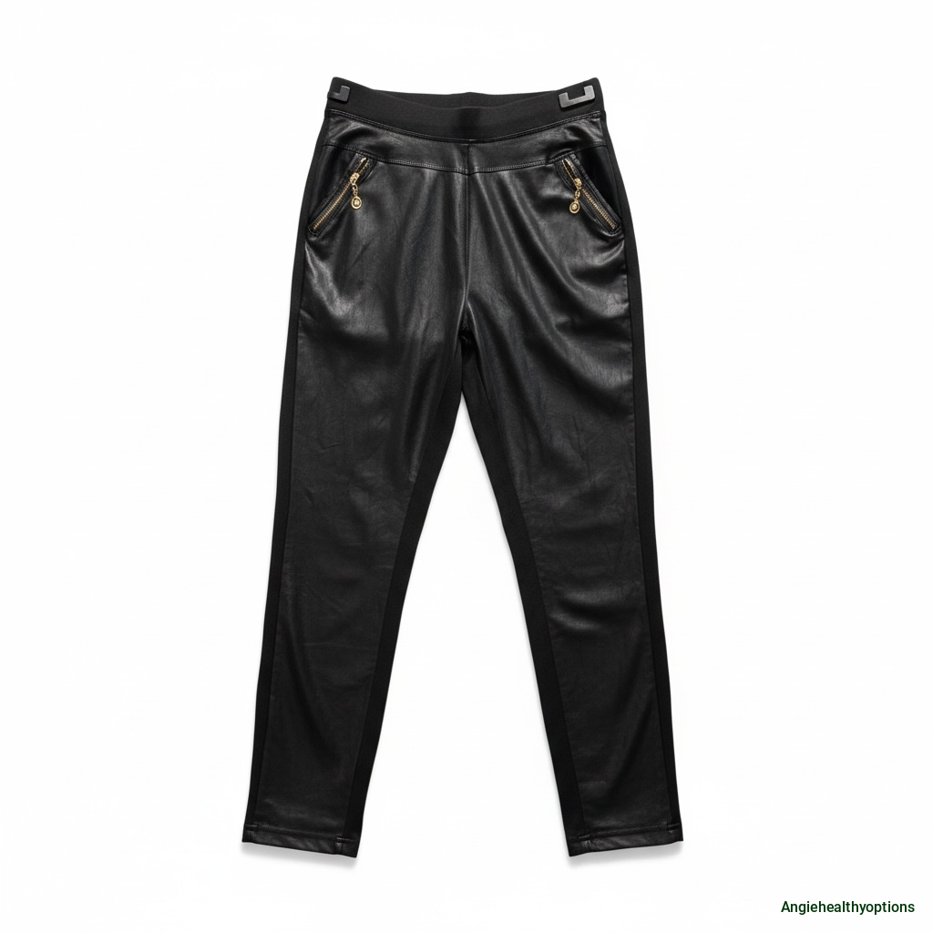 Elevate your everyday wardrobe with these sleek Unbranded Black Faux Leather Jogger Pants, designed to combine comfort with modern edge. Crafted in a smooth leather-look finish, these joggers feature a relaxed tapered leg, elasticated waistband, and stylish gold-tone zip pockets for a premium touch.